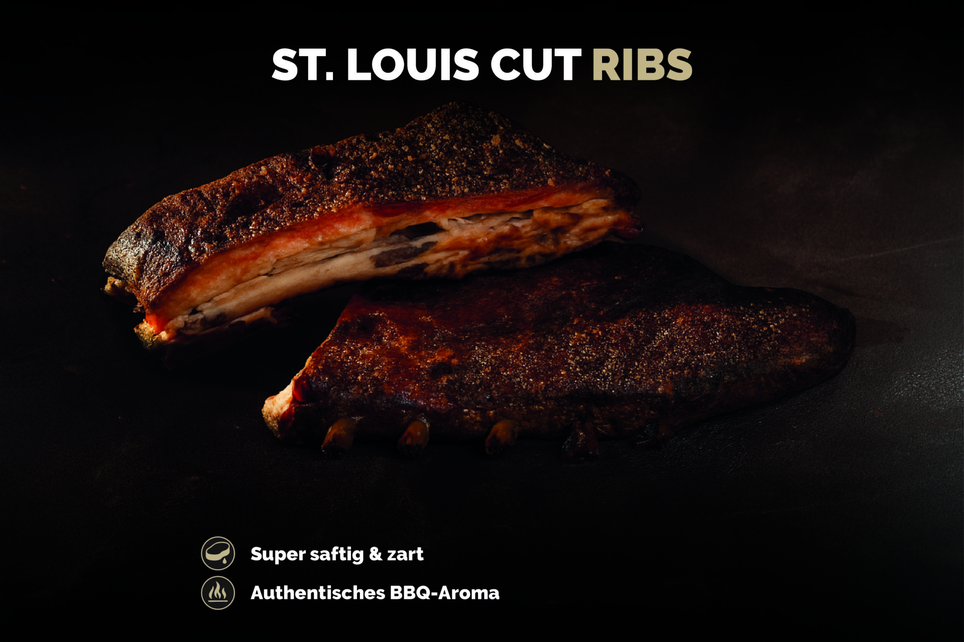 St. Louis Cut Ribs, regional bezogen und von uns per Hand gesmoked – aromatisch, gleichmäßig und komfortabel zu erwärmen. Ein Muss für alle, die konstant perfekte Ribs mit kräftigem BBQ-Geschmack lieben.